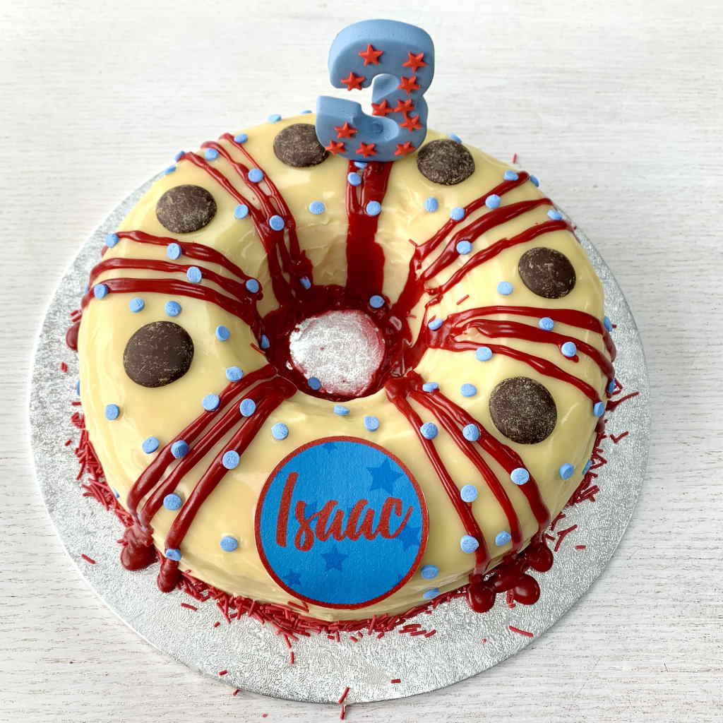Want to really emphasise the theme or bring in things that they love? Why not add edible images around the sides to really boost the fun factor. You could even finish it all off with a sugary celebration of their age in the form of a fondant number standing on top of the doughnut! Simply select “Yes please” to the edible image and/or standing fondant number options and we will be in touch to confirm the details with you.